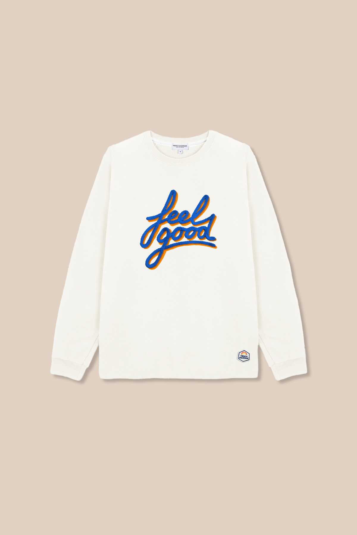FEEL GOOD Sweatricotin, the ideal piece to combine comfort with good humor, from the moment you get out of bed. A must-have for facing the day with a smile.