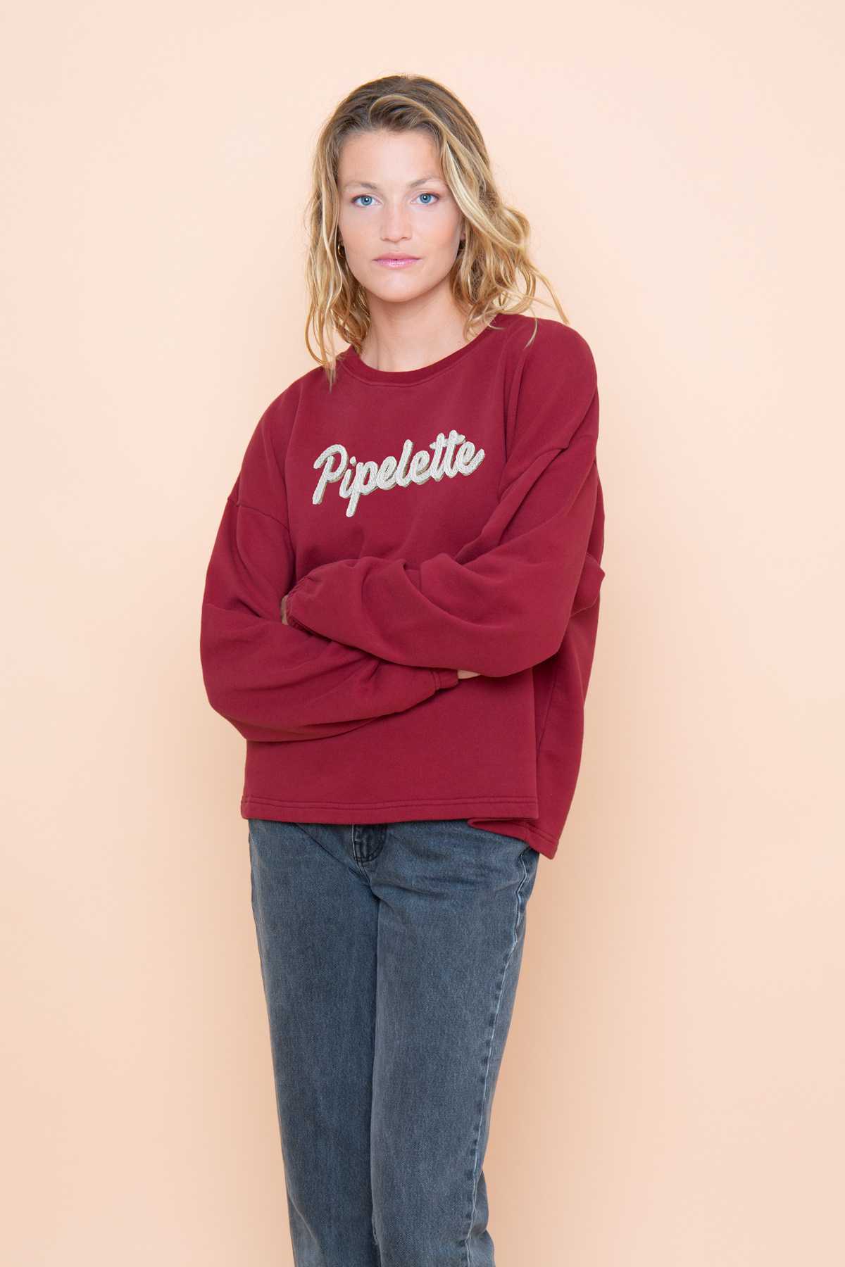 PIPELETTE Sweatricotin, for those who chat, laugh, and live life to the fullest. Chatty perhaps, but always stylish. Available in a Nora cut.