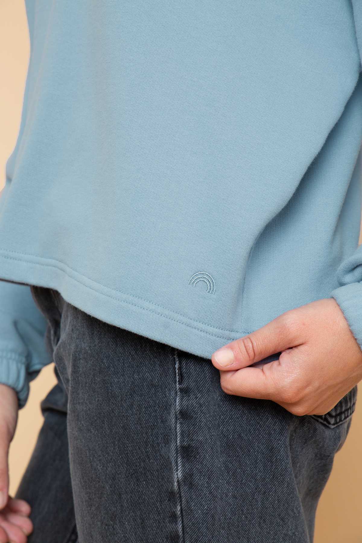 The Nora sweatshirt, made from premium 100% cotton fleece, reinvents the look with its loose fit and generous volumes. Inspired by the Rosie model, it stands out with its rib-free finishes that give it a faux-crop feel for an even more feminine, easy-chic look.
