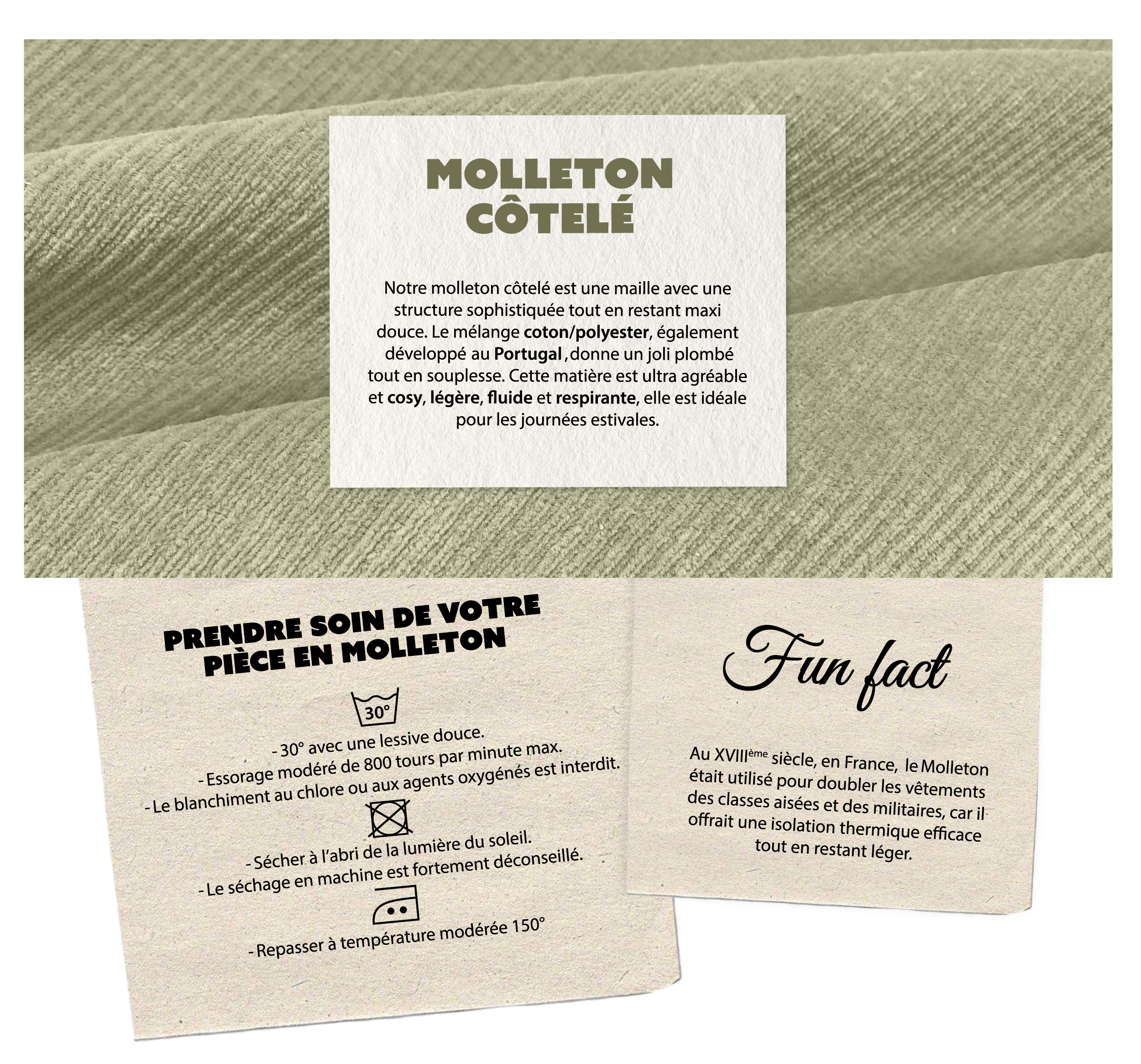 Depuis notre studio à Bordeaux, Candice, notre styliste dessine les modèles et Marion, responsable studio, sélectionne avec grande attention toutes les matières selon un cahier des charges éthique.