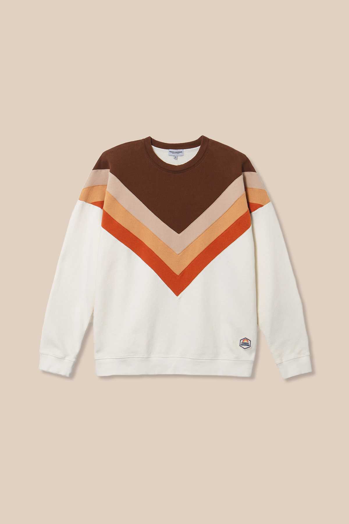 NEW IN : le sweatshirt ELIOT avec ses bandes graphiques tricolores, allie confort et style pour un look sport d'hiver chic, vintage et ultra tendance. Parfait pour affronter le froid avec élégance et faire sensation sur les pistes. Disponible en deux déclinaisons couleurs.