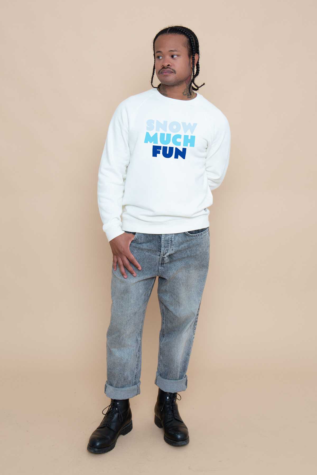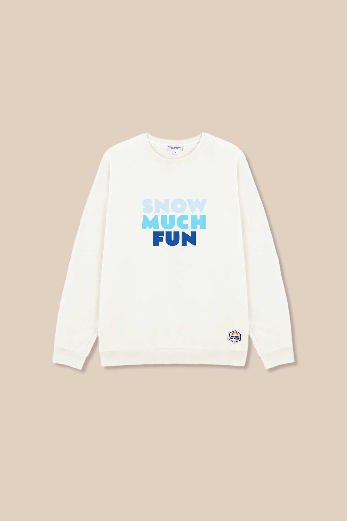 Snow much fun et beaucoup de chaleur. Ce sweat Warmy porte bien son nom avec sa matière extra chaude et son message cool. Une bulle de confort pour passer l’hiver avec le smile.