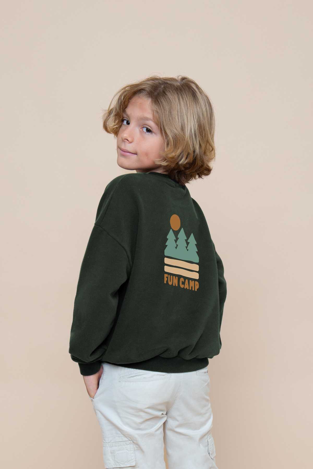 Avec son visuel FUN CAMP dans le dos, ce sweat enfant donne envie d’enfiler des boots et de courir partout, tout en restant bien au chaud grâce à notre molleton Warmy. Que l’aventure commence mais sans frisson.