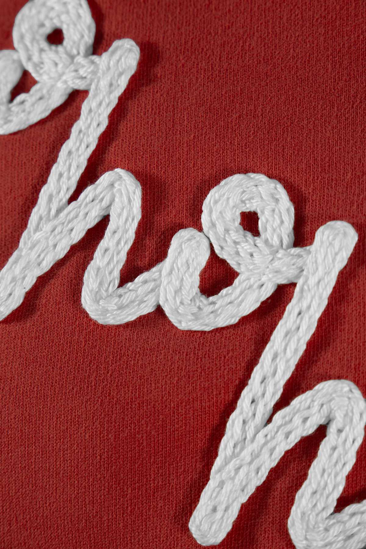 - Le motif en tricotin de coton, brodé à la main et à la commande dans notre atelier à Bordeaux. Un délai supplémentaire de quelques jours est nécessaire avant l’expédition.