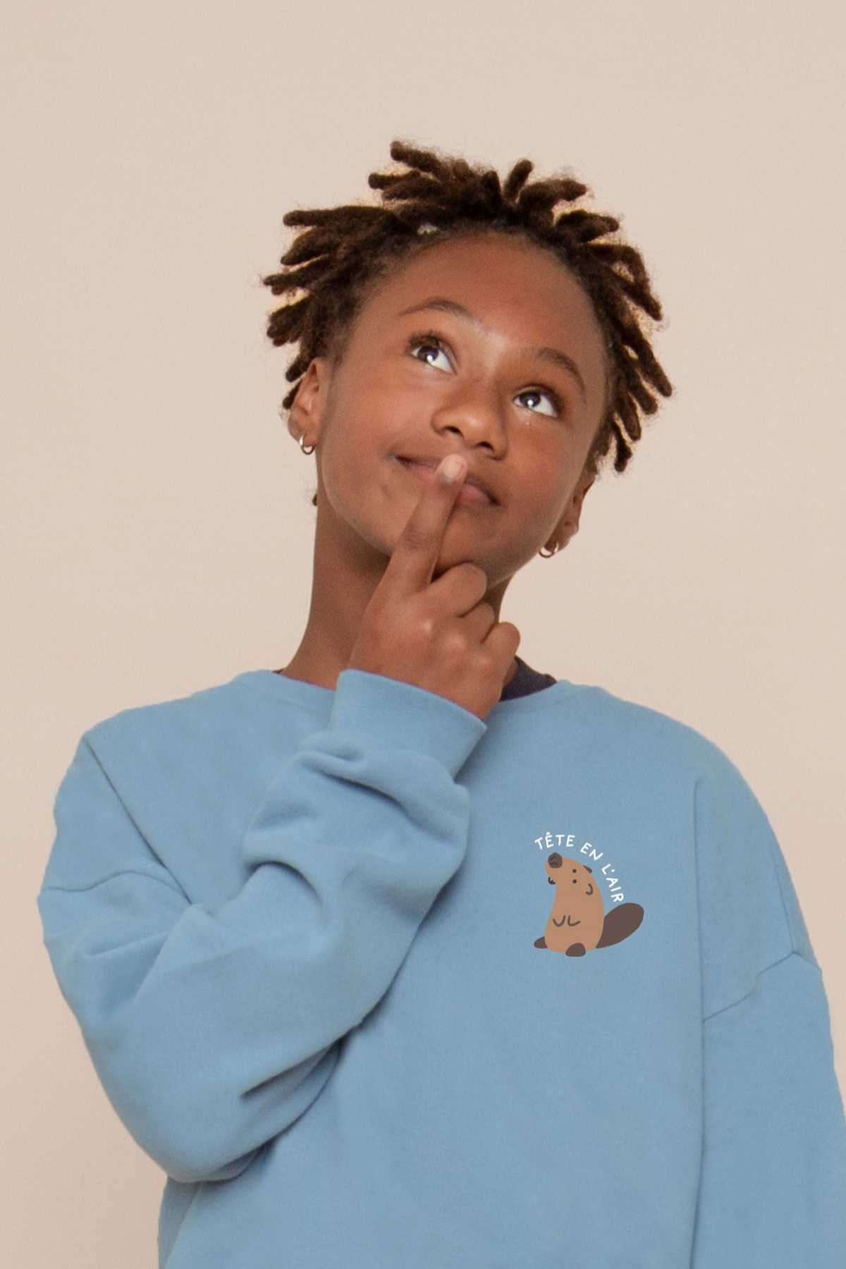 Ce sweat enfant TÊTE EN L’AIR en molleton Warmy accompagne les esprits libres partout et tout le temps. Pour les petits rêveurs qui n’ont pas froid aux idées, juste envie de douceur et de chaleur en hiver.